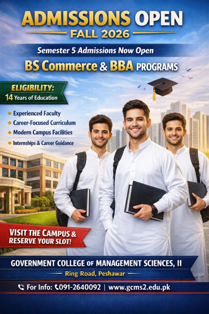 We are Government College of Management Sciences-II, Ring Road, Peshawar—focused on excellence for your career.
